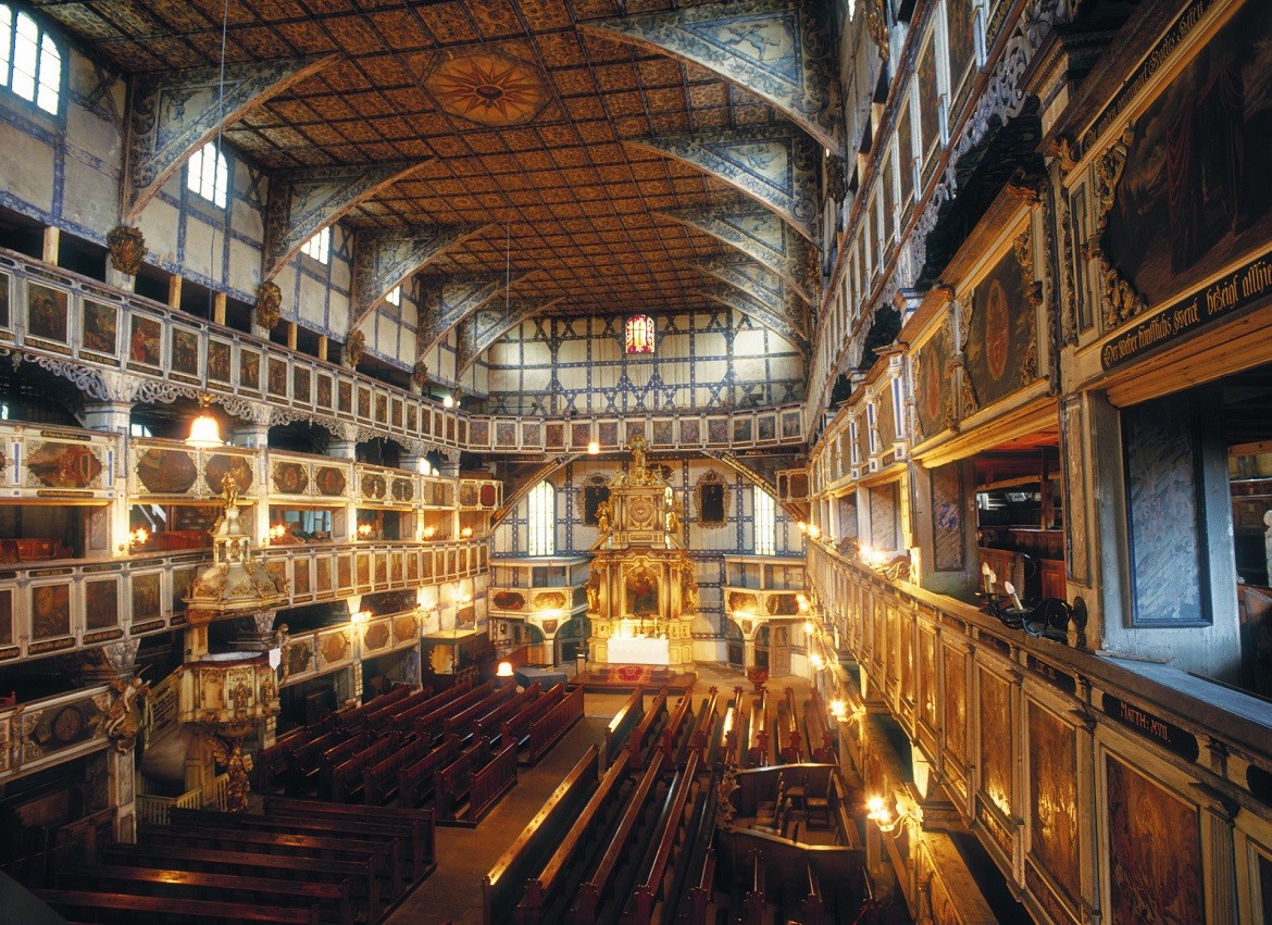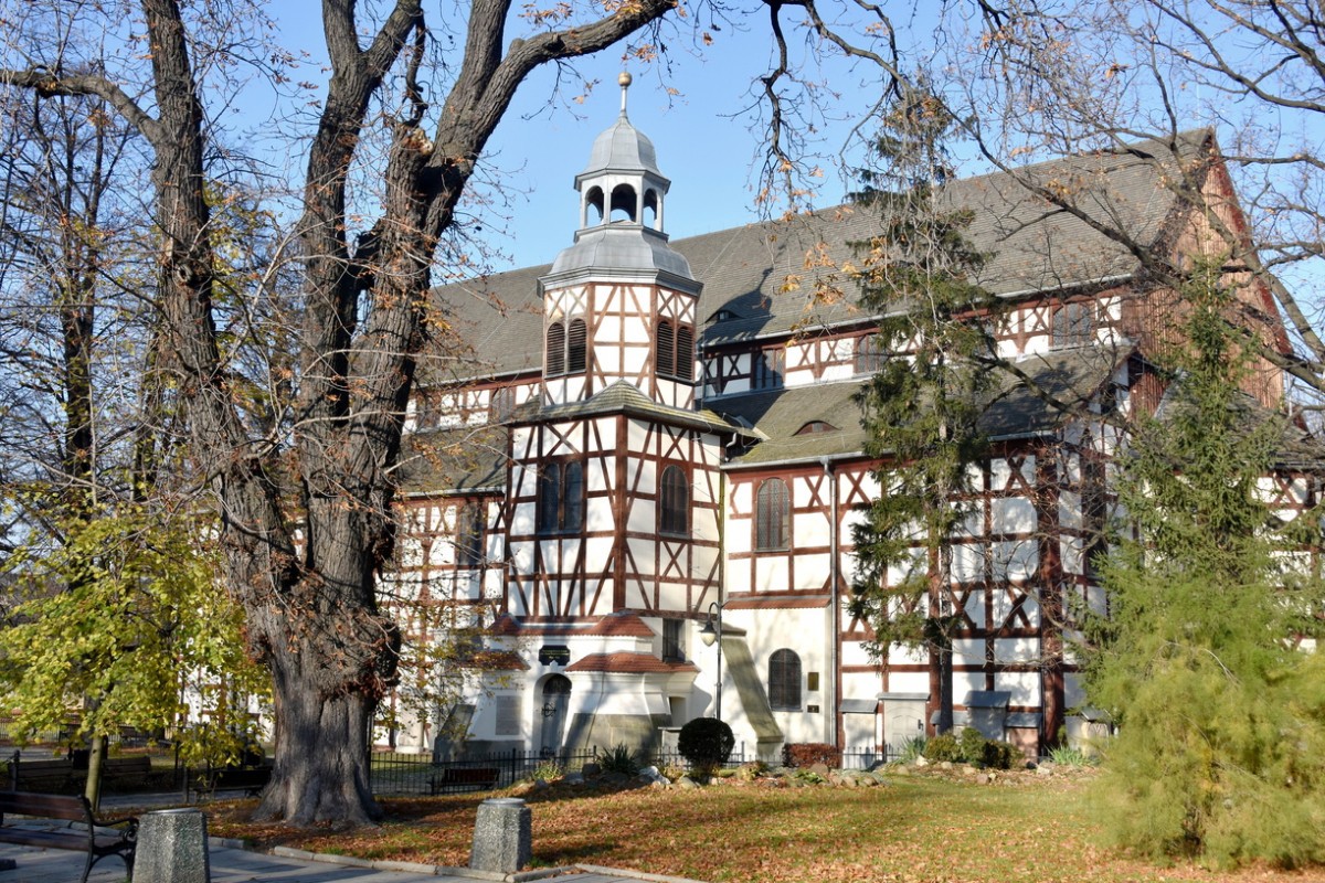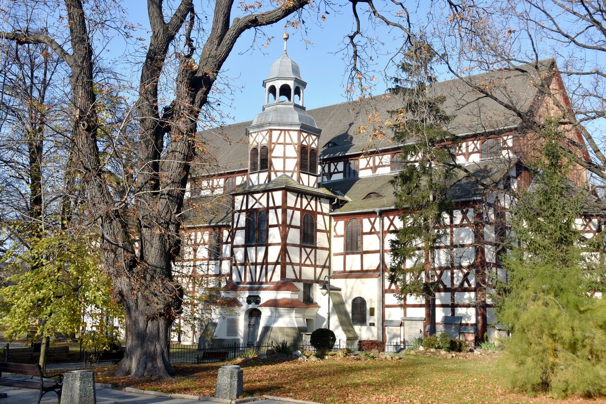 Ці протестантські храми не могли бути схожими на традиційні костьоли, вони повинні були будуватися з неміцних матеріалів і знаходитися на відстані гарматного пострілу від міських стін. Таким чином були споруджені об’єкти з використанням дерева, соломи і глини – найбільші цього типу будови в Європі, які могли помістити декілька тисяч осіб. Зовні вони непримітні, зате в інтер’єрі багатий барочний декор.