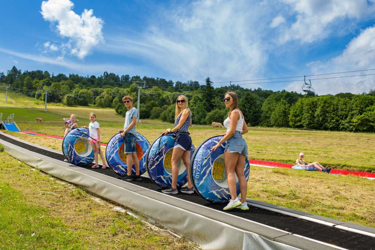 Тут можна спуститися на найдовшій у Польщі мотузковій тирольці, проїхатися гірським скутером або відчути адреналін на найдовшій у світі трасі для тюбінгу.